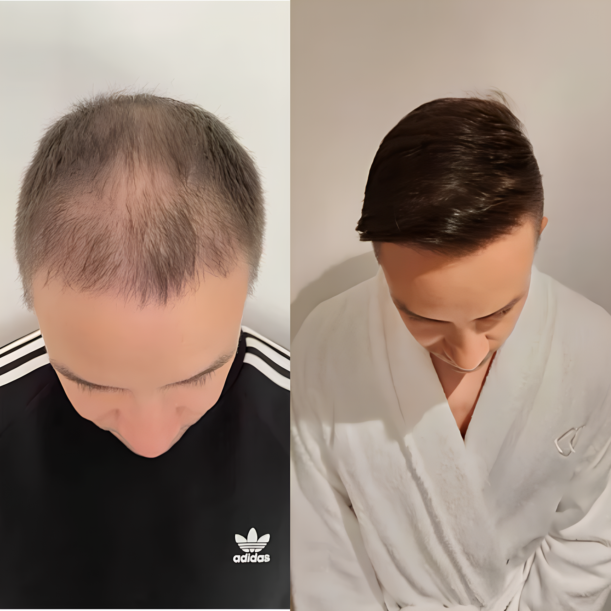 "Je n'osais plus sortir sans casquette. Aujourd'hui, 12 semaines après, je peux enfin me regarder dans le miroir sans complexe. Ma femme dit que j'ai rajeuni de 10 ans. Le prix vaut largement le résultat."